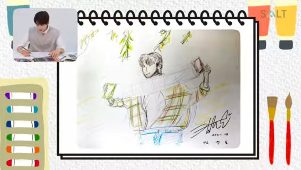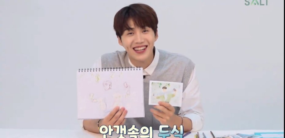 Notably, his artworks won twice in the drawing contest of 2 Days and 1 Night Season 4 variety showโa portrait of Dindin’s mother and an autumn-inspired drawing.
