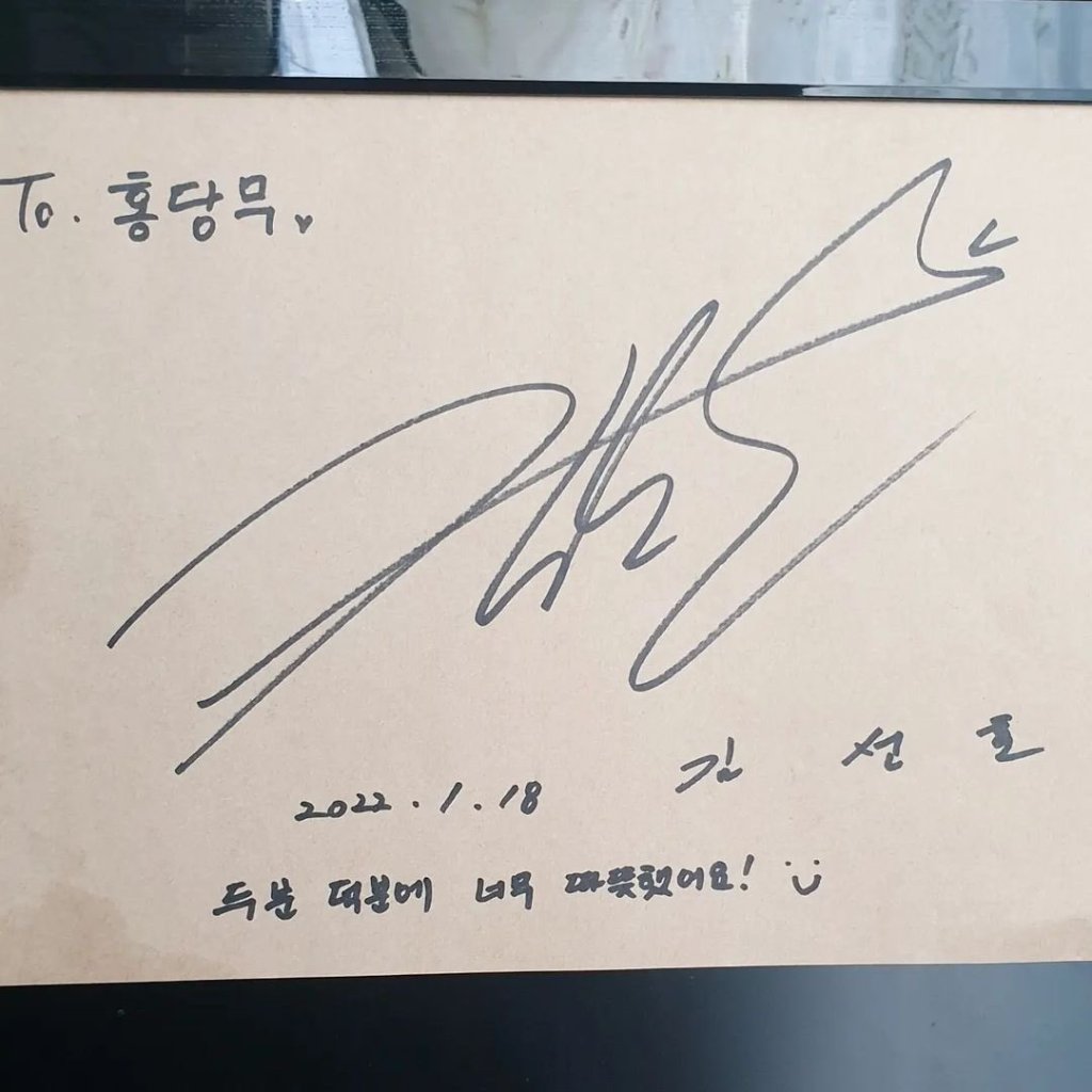 One of the stores that the team visited, Jeju Carrot Bro, posted a photo of Kim Seonho’s autograph and shared a story about his encounter with the actor on Christmas Day and on January 18th.