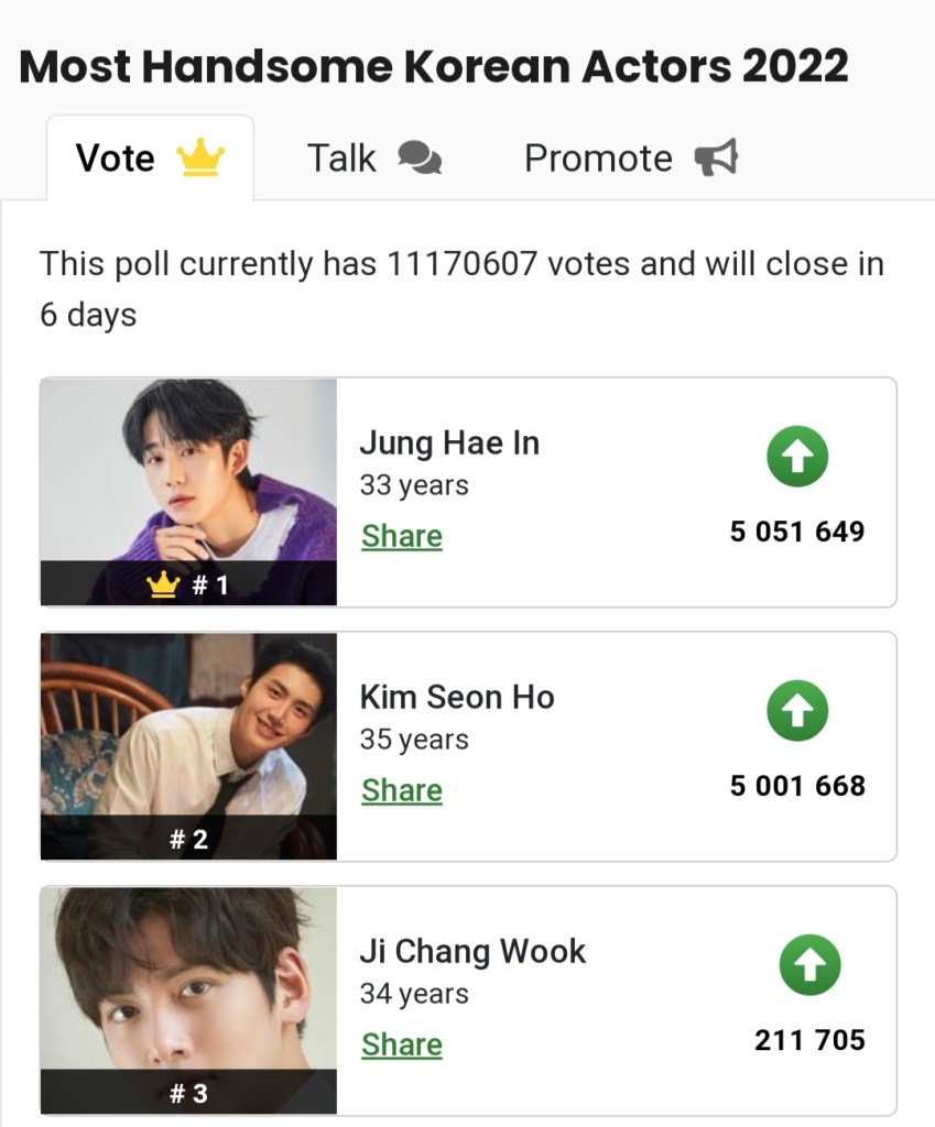 Two leading handsome Korean actors, Jung Hae-in and Kim Seonho, are still in a tight race for the “Most Handsome Korean Actor 2022” with only a few days left.
