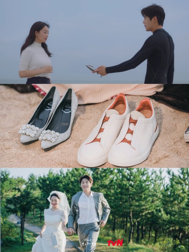From the lost shoe at the beginning of the story, it beautifully ended with two pairs of shoes that found each other and chose to stay side by side for life. โIโd love it if our shoes were always side by side at the door together. So that neither of us would be lonely,โ Hye-jin said.