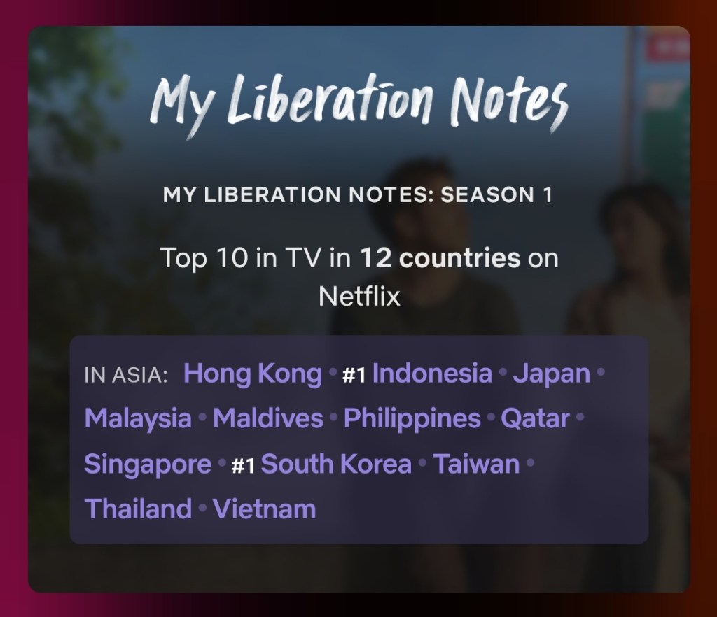 The Korean drama, My Liberation Notes (2022) has landed at no.1 spot in South Korea and Indonesia on Netflix on the week of May 23 to 29, 2022.