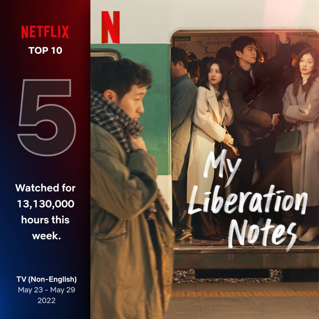 Amid the several great shows streaming on Netflix, My Liberation Notes (2022) has entered Global Top 10 after 6 weeks of streaming, attaining so far a total viewing record of 22.9 million hours.