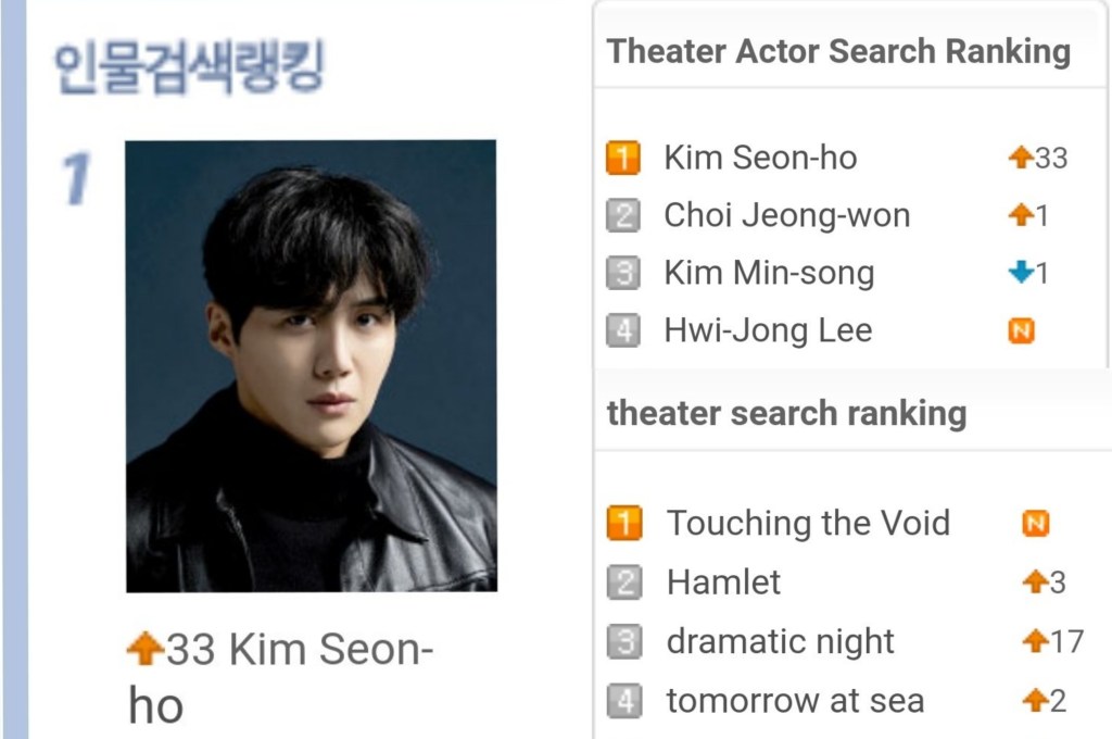 On June 2nd, Kim Seonho and Touching The Void topped the real-time search rankings on Play DB, a company that provides information on performances from theater to musical. Local and overseas fans also flocked to Interpark site to purchase tickets for the theatrical play.
