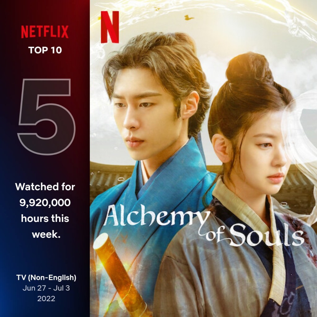 The Korean TV series, Alchemy Of Souls (2022) and Ghost Doctor (2021) have entered Netflix’s Global Top 10 in the category, non-English TV show, on the week of June 27 to July 3, 2022.