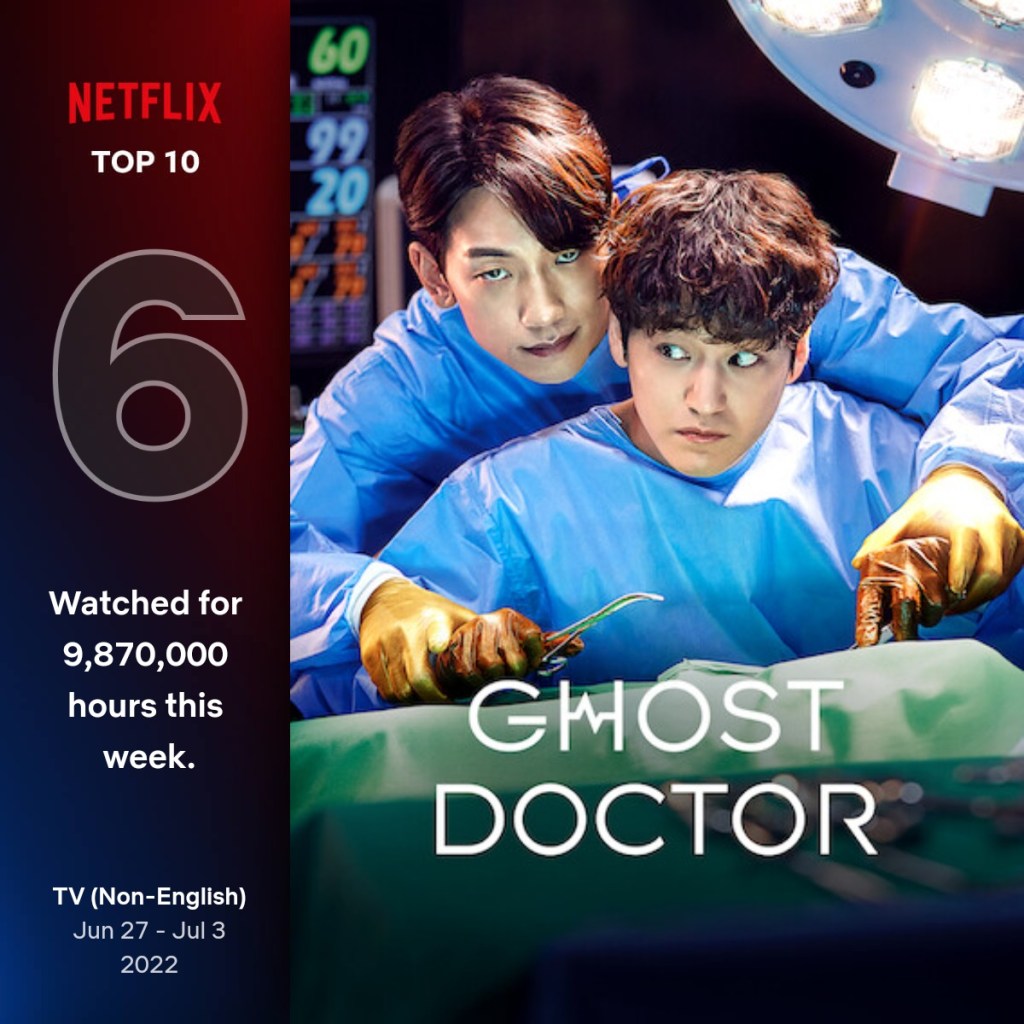 The Ghost Doctor (2021) achieved 6th place worldwide and has been watched so far for 9.8 million hours. It is popular in 22 countries including Egypt, Kenya, Mauritius, Morocco, Nigeria, Bahrain, Bangladesh, India, Indonesia, Philippines, Sri Lanka, to name a few.