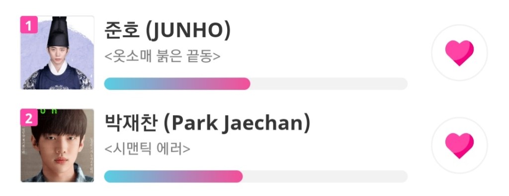 As of September 7th, Park Jaechan and Lee Junho are leading the race for the popularity award. Both actors delivered impressive performances and gained huge recognition this year.