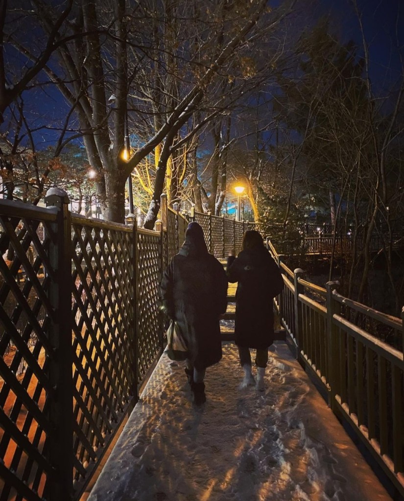 It’s an evening walk in the snow for Gong Hyo-jin and her friend. She got married this year with her long-time boyfriend. In 2023, she will play an astronaut in the romantic series Ask The Stars who falls in love with a tourist to be played by Lee Minho.