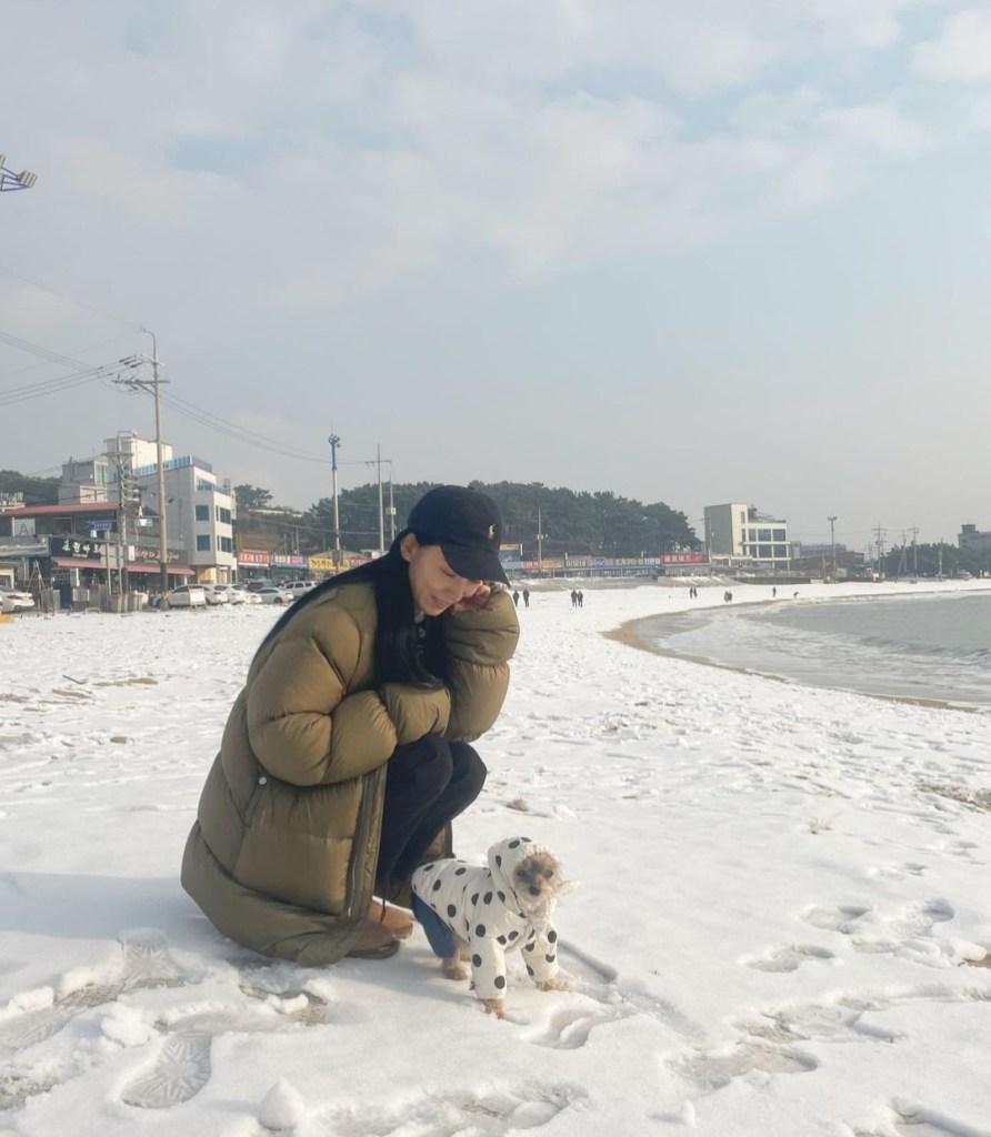 Kim Seo-hyung goes outdoor with her pet for a snow experience. This year, she played a wife with an illness in Watcha’s Recipe For Farewell.