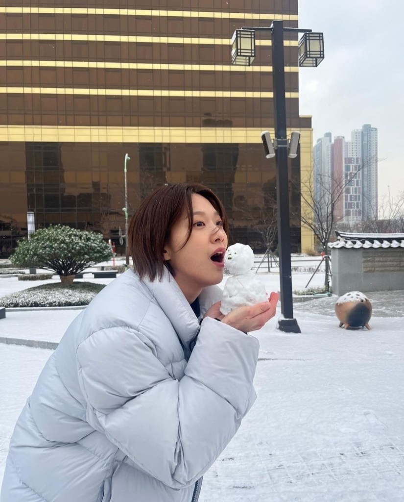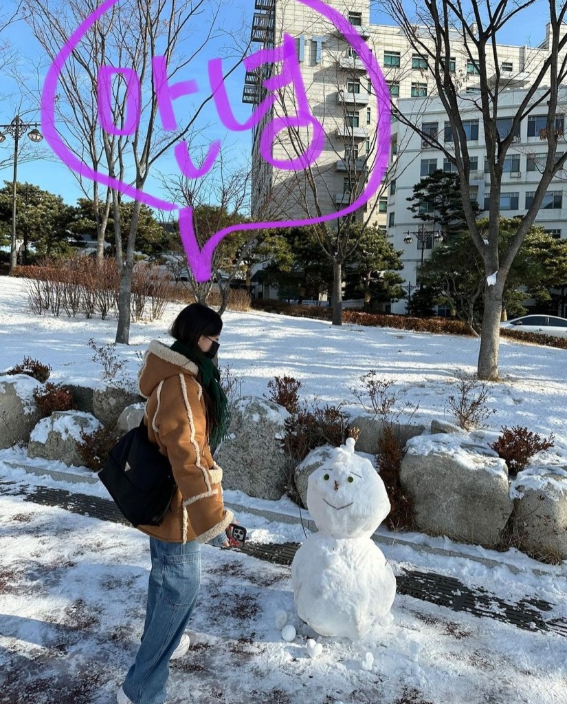 Lee Joo-woo spends a fun moment with her little snowman. She starred in JTBCโs Welcome To Waikiki (2018), SBSโ Why Her? (2022), and will appear in the upcoming tvN series, Stealer: Seven Joseom Coins (2023).