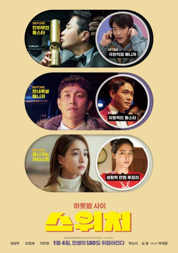 Switch (2023) is a comedy-drama Korean film about a troublemaking top star named Park Kang whose life begins to change dramatically when he meets a taxi driver on Christmas Eve.