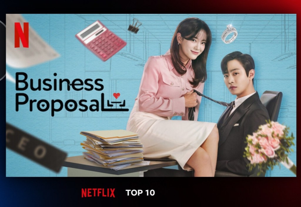 SBS’ Business Proposal (2022) is remarkably one of the most popular Korean shows in 2022 that reached Netflix‘s Top 10 in TV category in 58 countries. The rom-com show stayed on the global charts for 13 consecutive weeks and watched for a total of 279.1 million hours. It was most popular in Bangladesh, which stayed on Top 10 TV for 17 weeks, followed by Thailand, Indonesia, and India for 15 weeks. It also landed at no.1 spot for three consecutive weeks on Netflix’s Global Top 10 in non-English TV category.