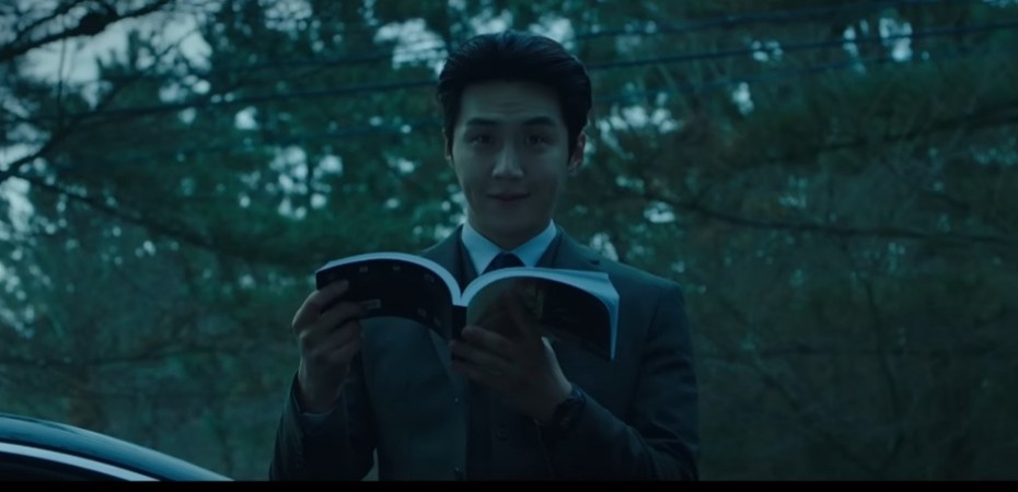 The video then transitions to an airplane scene where Kim Seonho sits beside with Marco who is wearing a black headset and whose face shows some boxing marks. While showing Marco something on the screen, the handsome and dashing nobleman turns to him with an insane look. The young man in a cold tone asks, “Who the f*ck are you?” Kim Seonho utters a strange answer, “Chingu” (a Korean word for friend) then gives him a creepy laugh like a psycho.