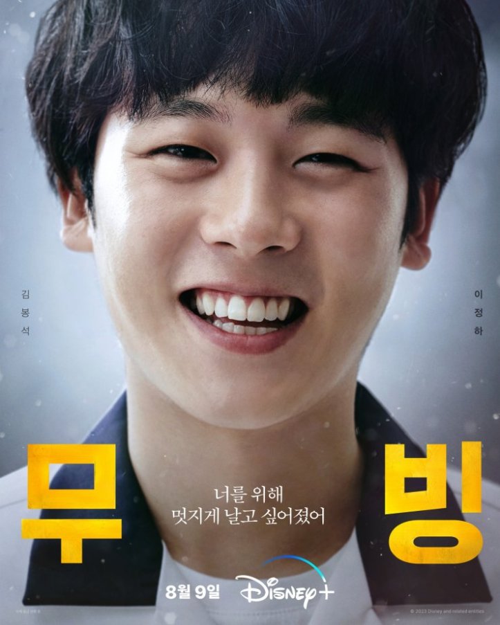Lee Jung-ha as Bongseok in the superhero series, Moving (2023) has the ability to fly with super five senses. His body gets heavy when he is calm and he floats if he gets emotionally excited. To control himself from floating, he carries a school bag that contains heavy weights, his lower legs are wrapped with sandbags, and tries his best not to float by reciting the Pi digits 3.14. He considers himself a loner who has no friends until he meets Jang Huisoo (Go Youn-jung), a transfer student who becomes his buddy and crush, filling his happy heart.