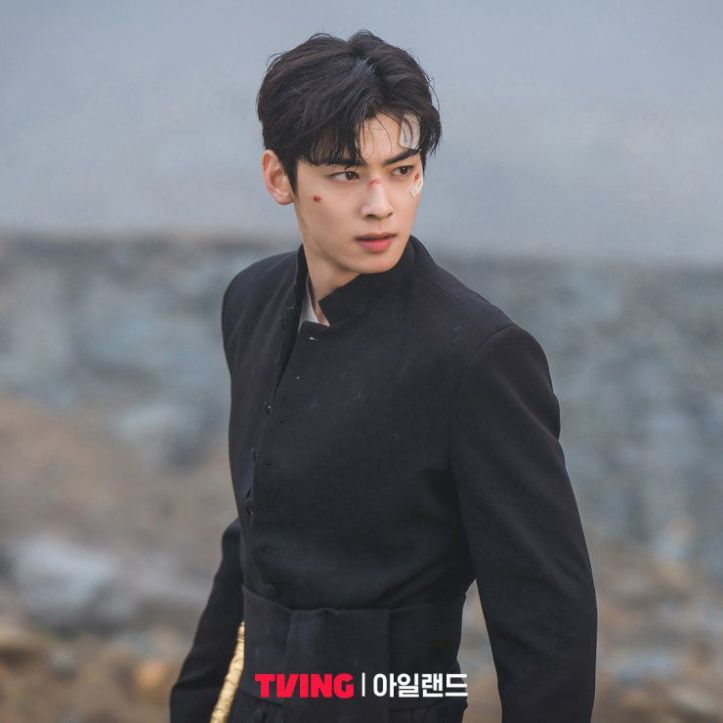 Cha Eun-woo as Johan in the fantasy-action series, Island (2022-23) is a priest who performs exorcism against evil spirits and embarks on a dangerous journey to face off against haunting demons that attack the mysterious island of Jeju. He speaks Italian, Latin, and to awaken and increase his spiritual powers, he wears his trademark earrings and listens to hip hop songs with his headphones on.
