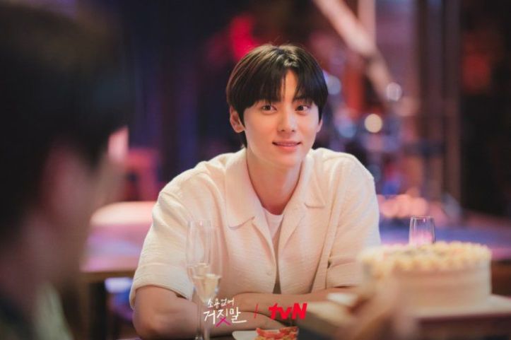 Hwang Minhyun in the rom-com drama, My Lovely Liar (2023) is a well-known composer and producer but whose identity is a mystery. He goes hiding and changes his name from Kim Seung-joo to Kim Do-ha due to an incident in the past. Until he meets Mok Sol-Hee (Kim So Hyun), a woman who has the supernatural ability to detect lies, finding love and breaking free.